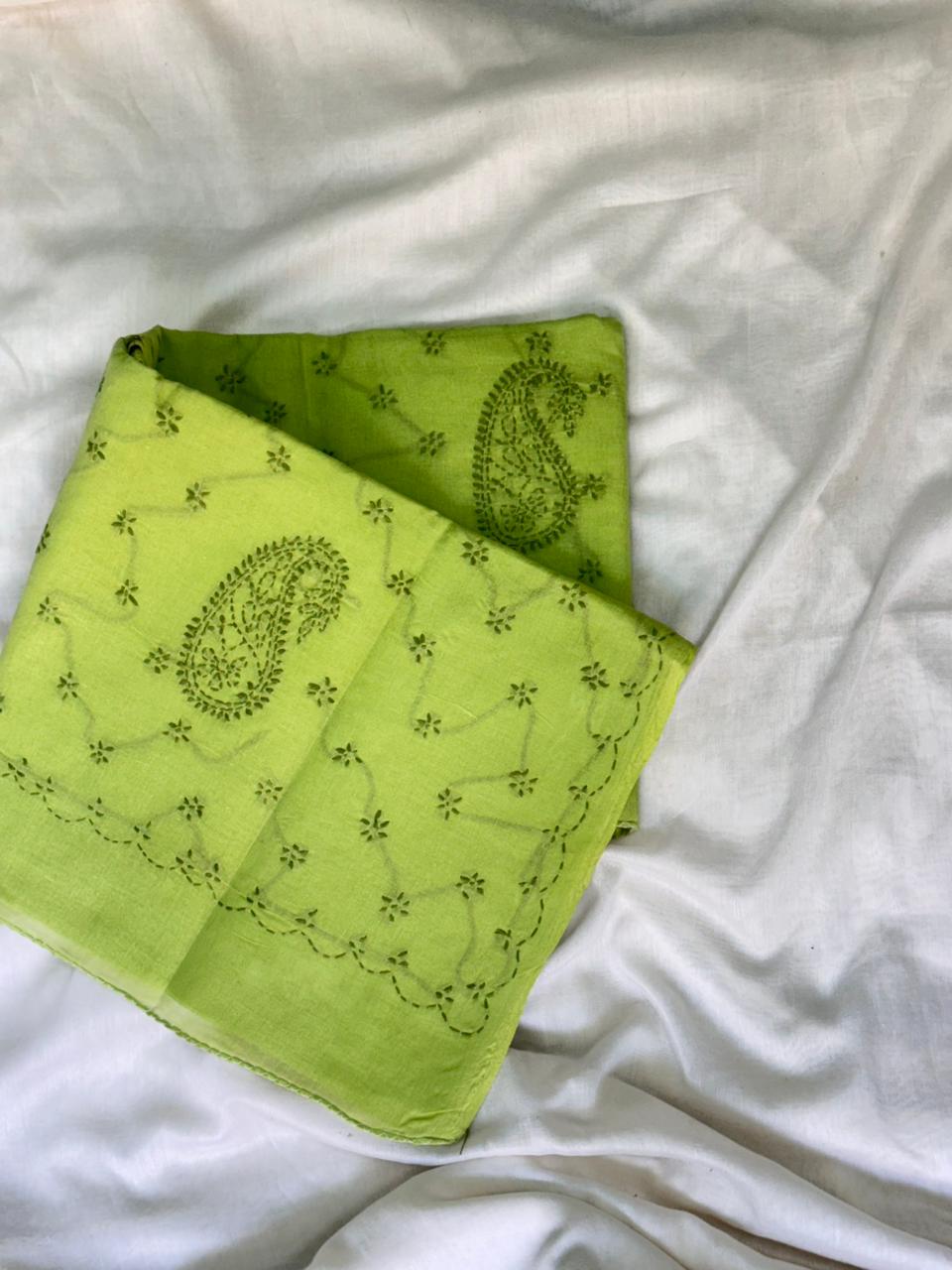 The saree is accompanied by a matching blouse piece, adorned with the same intricate Chikankari work, ensuring a harmonious and polished look. The lightweight cotton fabric promises comfort, while the elegant design makes it perfect for festivals, weddings, or any special event.