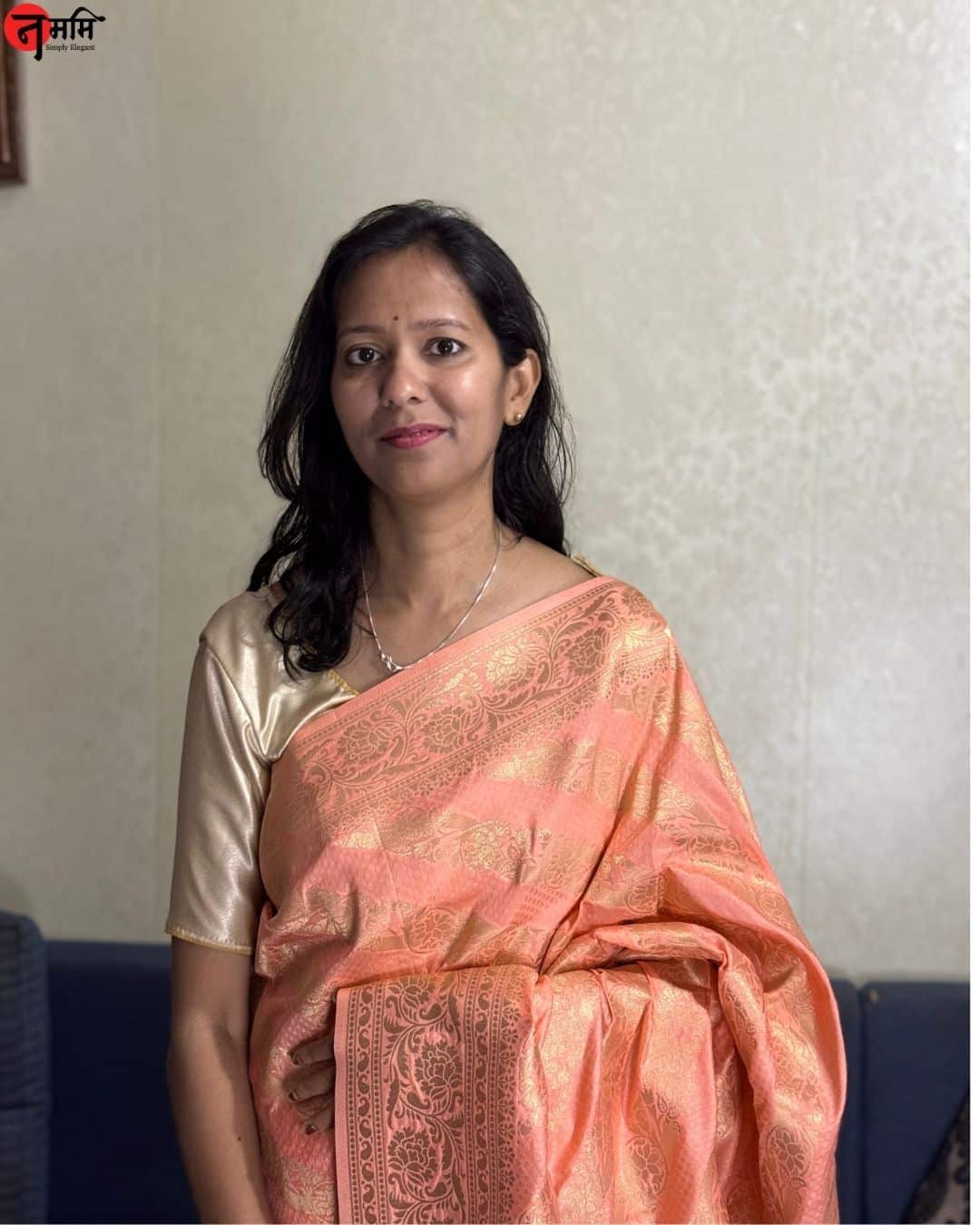 - Blouse Color: Peach with Golden borders