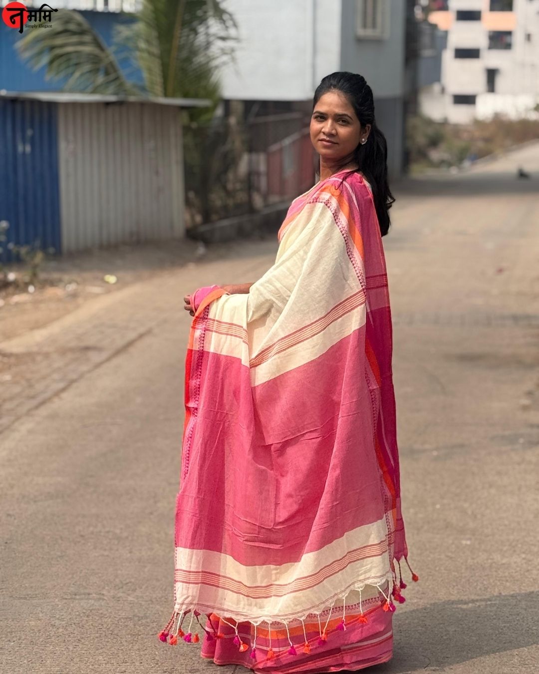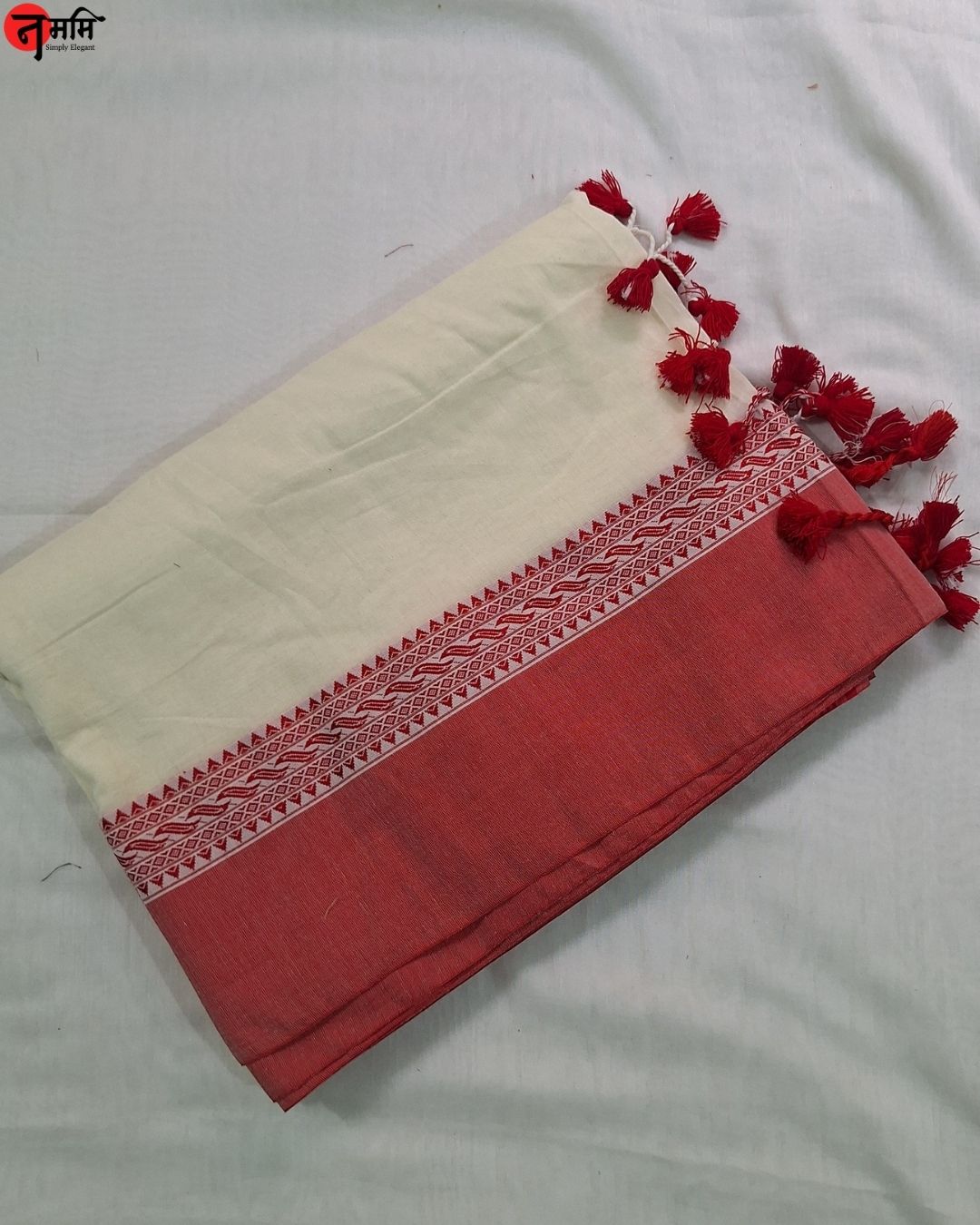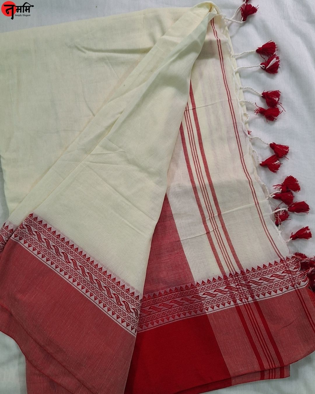 Pure Cotton Off White Saree With Weaving Contrast Border