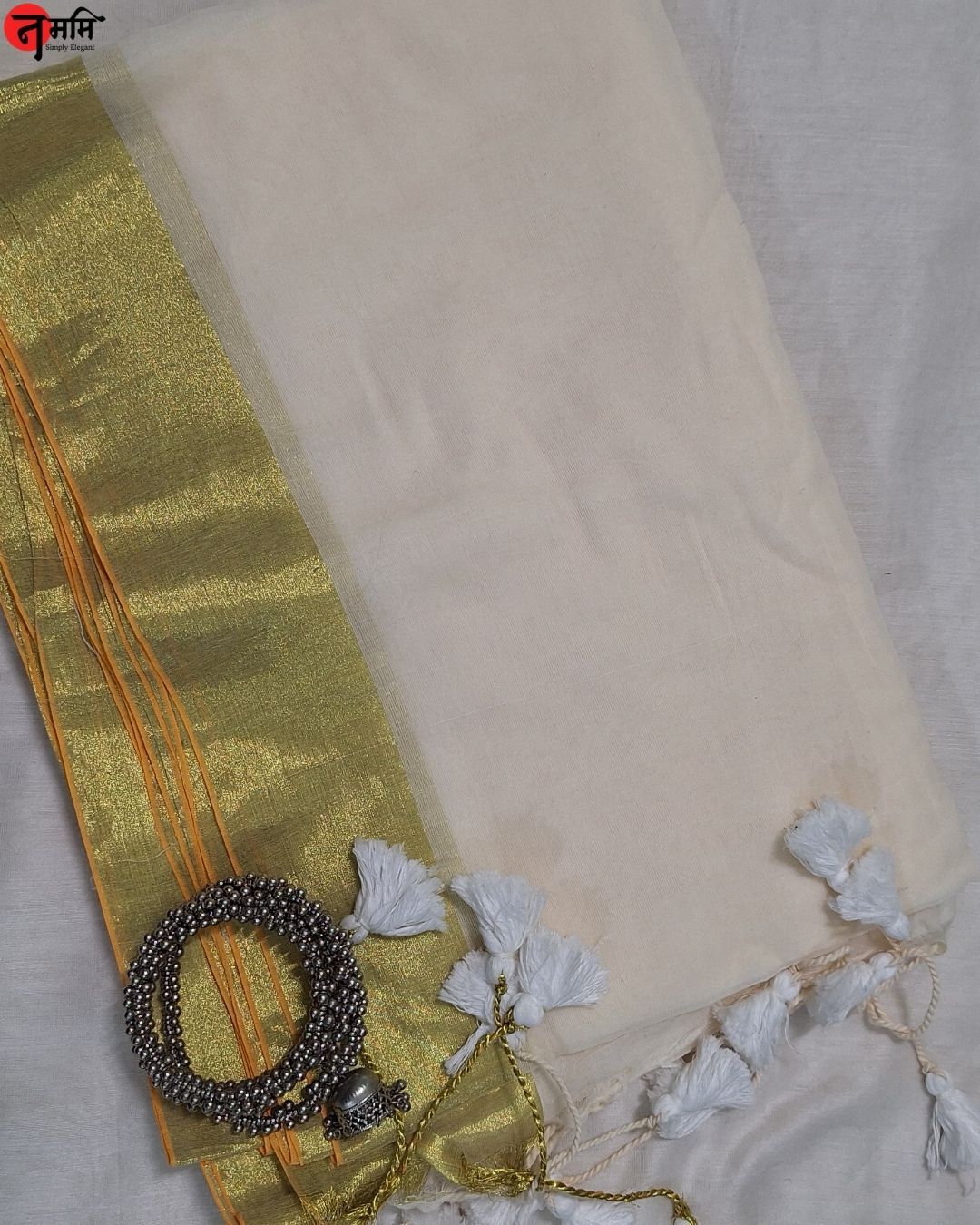 Saree Fabric: Pure Mulcotton Golden Zari Border Saree