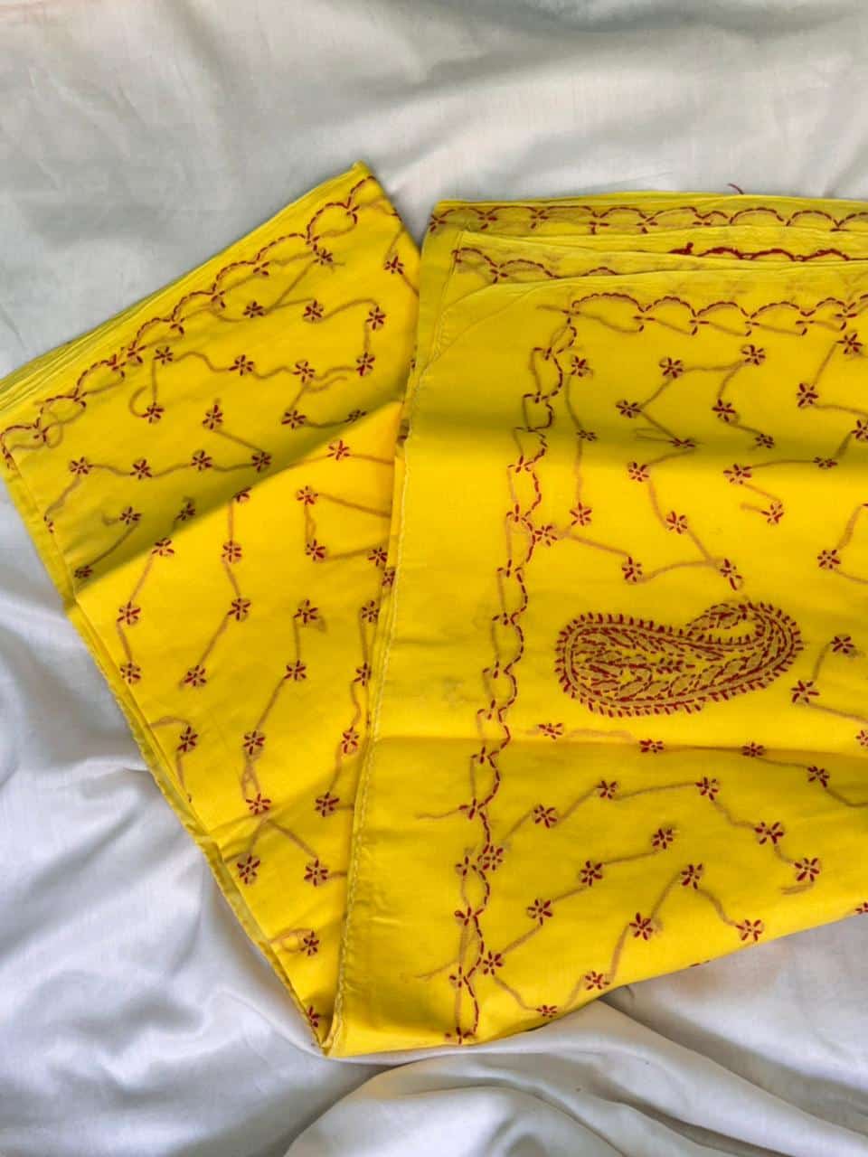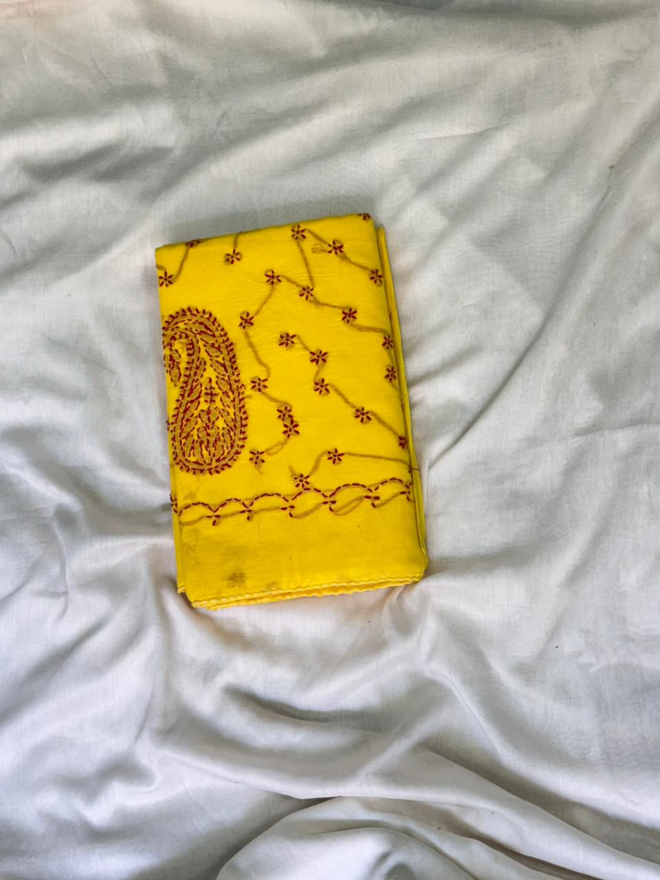 - Saree Colour: Yellow with Chikankari embroidery